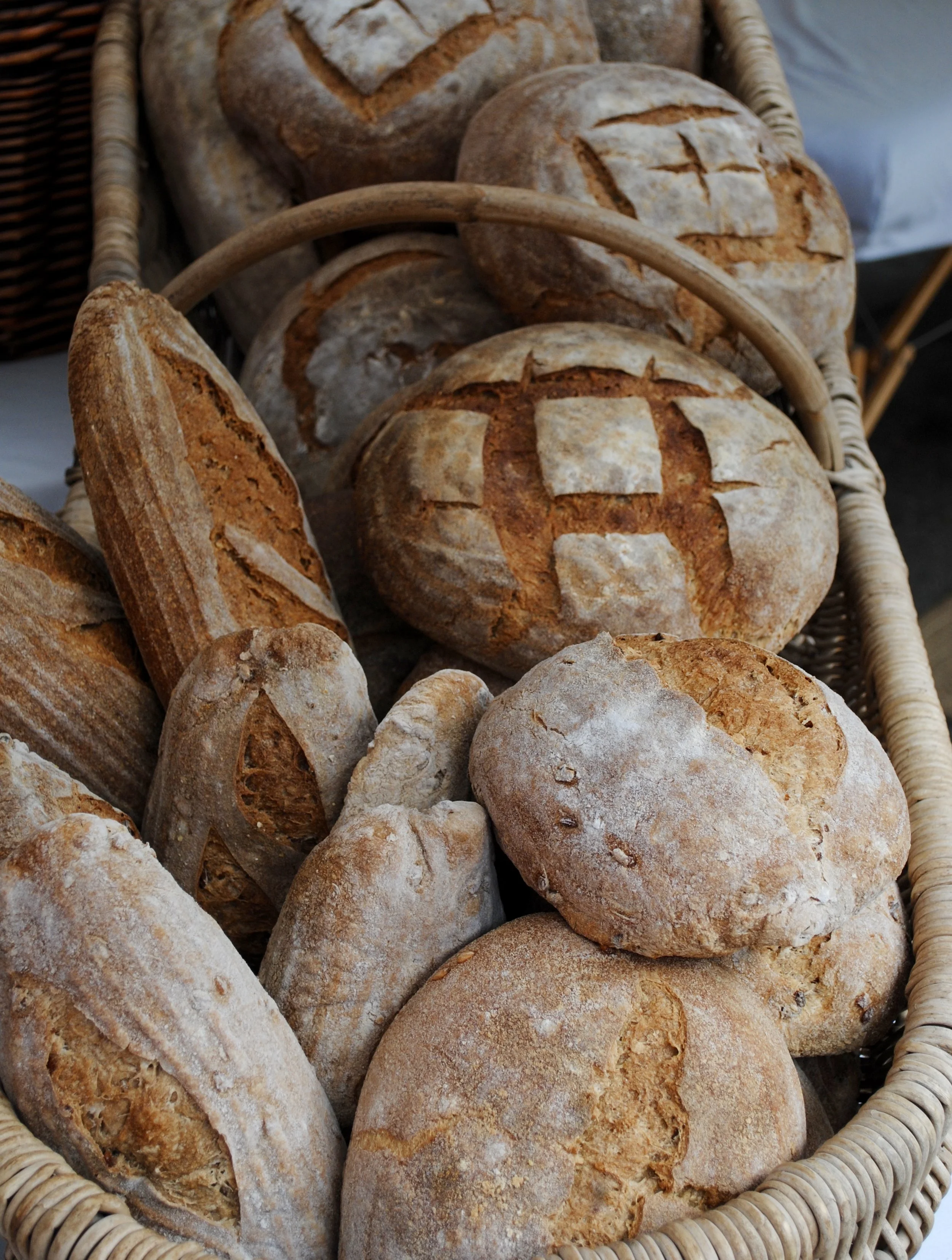 The bread pictured below is baked by a french woman, from old-world grains, milled by hand. Also on display were Bergamot Madelines, Peach Cake, Rye loaves, Baguettes, and jam-filled cookies, ALL of which I managed to resist with my iron will. I did pick up a hot latte from my favorite spot, The Fox Hounds Coffee House, on the walk home with my heavy basket. Perfect!